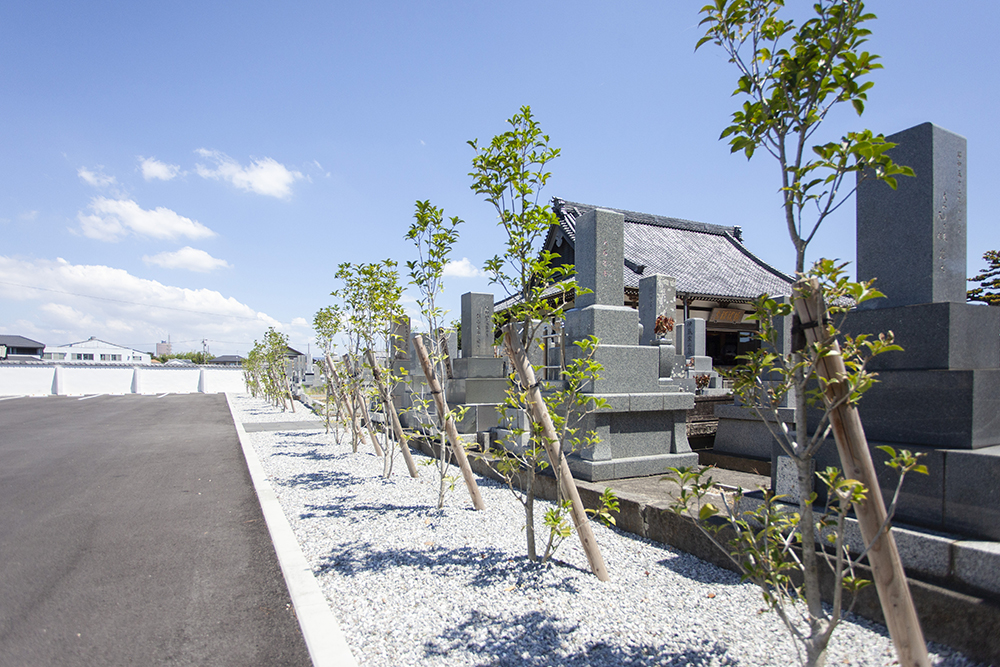 あわせて、墓地と駐車場の境界には「ヒイラギモクセイ(柊木犀)」を植栽し、季節の彩りを添えるとともに、墓域の結界としての役割も果たすよう整備しております。